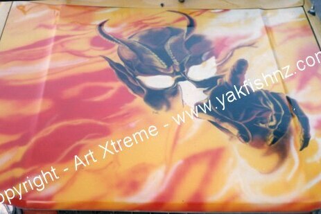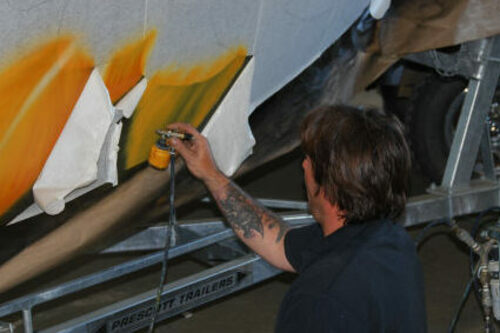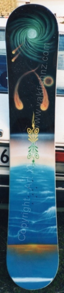 Other items can be painted using 2k automotive finishes. Objects like the bass guitar commissioned in 2004 and snowboard 1998 offering two different scenes with each orientation can be airbrushed to custom requirements.