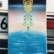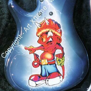 Other items can be painted using 2k automotive finishes. Objects like the bass guitar commissioned in 2004 and snowboard 1998 offering two different scenes with each orientation can be airbrushed to custom requirements.
